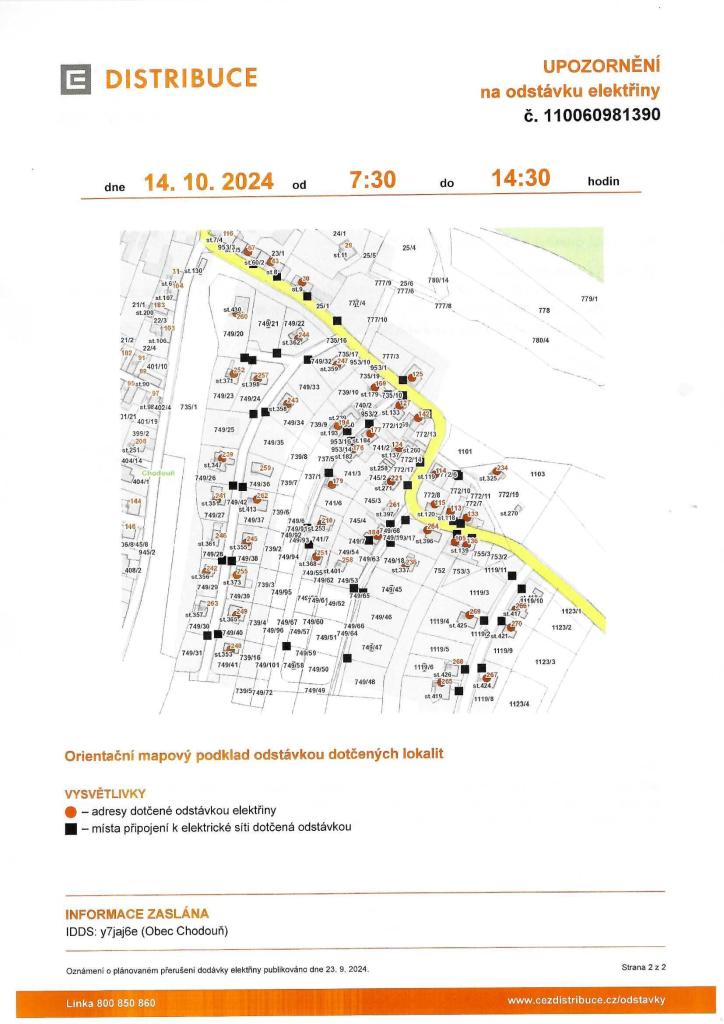 Oznámení o plánované odstávce dne 14.10.2024 od 7:30 do 14:30 hodin