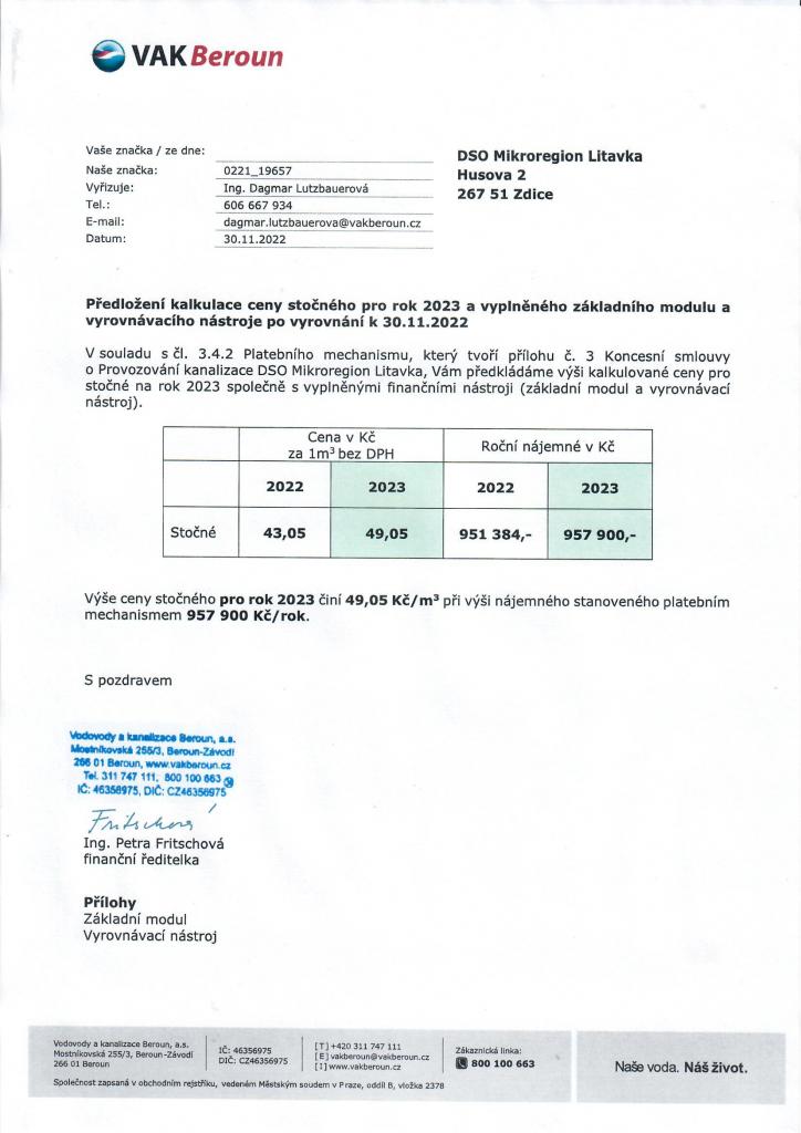 Kalkulace ceny stočného na rok 2023
