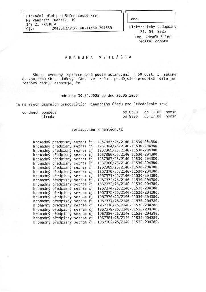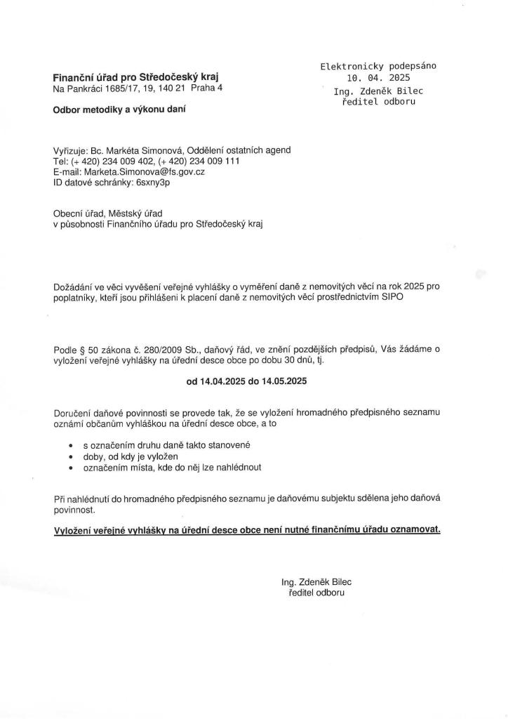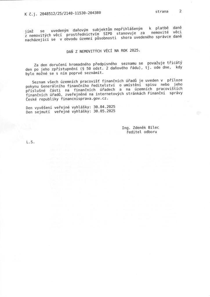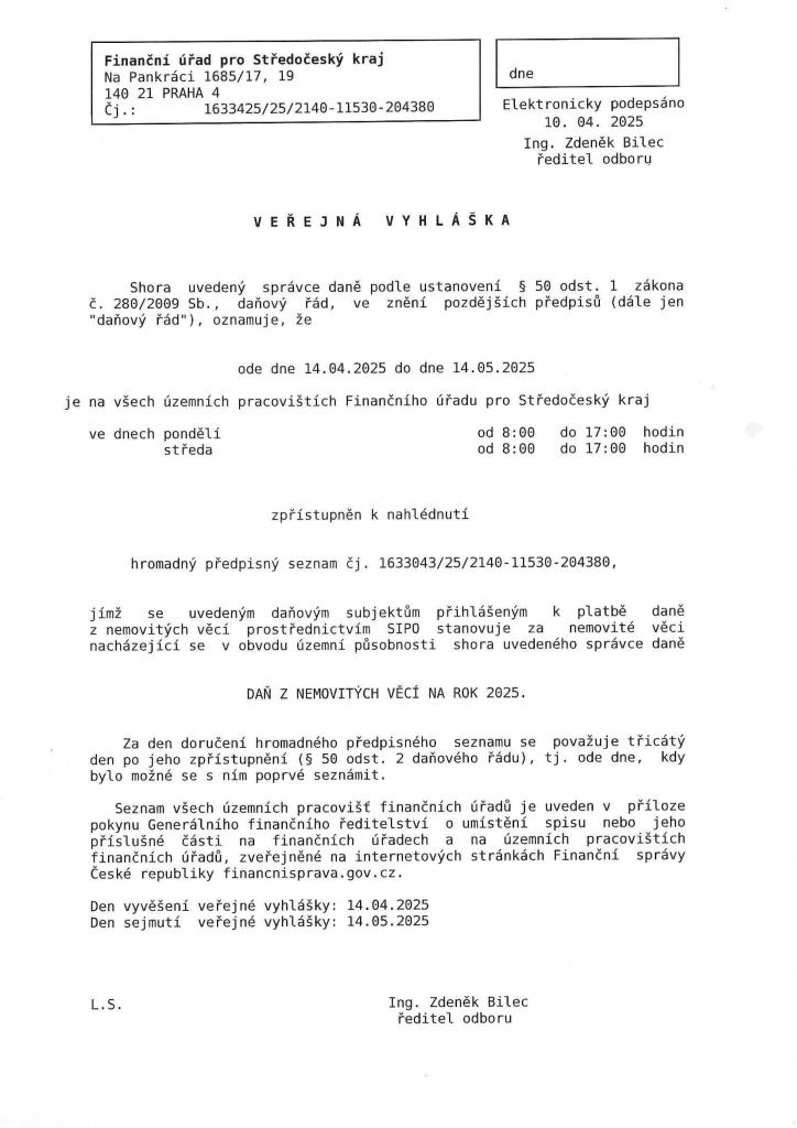 Veřejná vyhláška - daň z nemovitých věcí na rok 2025
