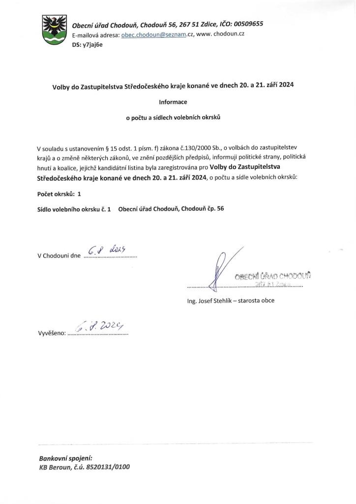 Volby do Zastupitelstva Středočeského kraje - Informace o počtu a sídlech volebních okrsků