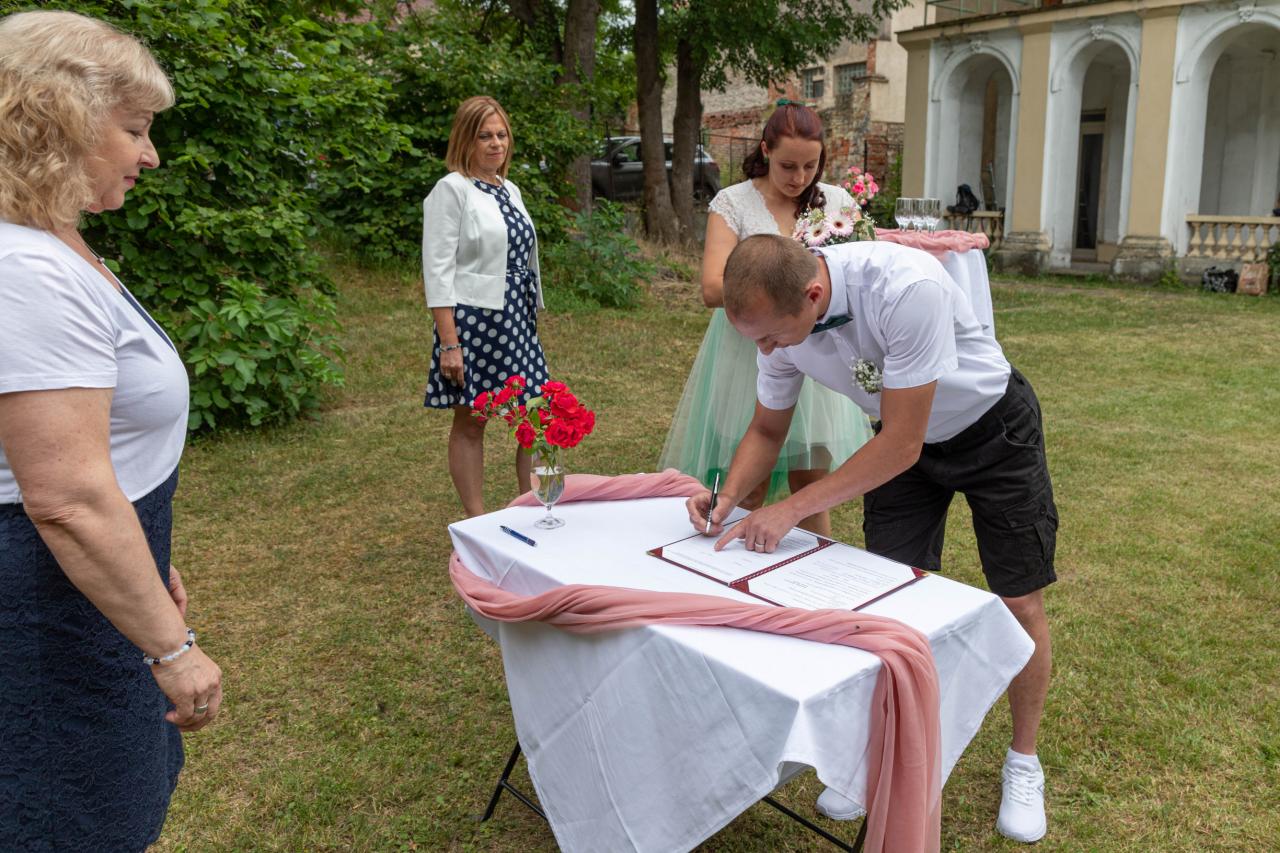 První oddaný mladý pár v zahradě Obecní vily Chodouň.